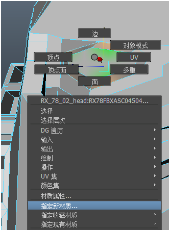 4、对已经添加好基础色的模型点击右键不放,选择“面”。按住左Shift不放,选择要加其他颜色的面(可多选)。再点击右键不放,选择指定新材质,各项异性,选择黄色作为眼睛的颜色。按照此方法再给所有细节添加颜色。对整体上色和局部上色到此为止。