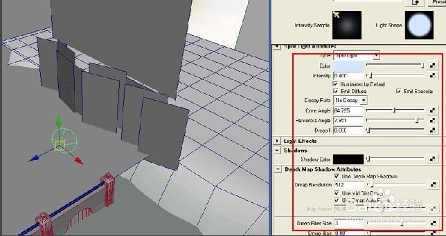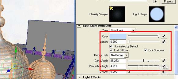5、补光:这2个灯光的参数是相同的,它们的作用就是为了让主体的轮廓更加突出和增加水的质感和细节,主要应用效果和颜色入图。