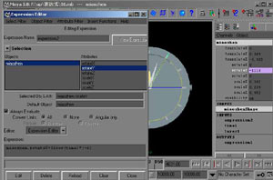 打开表达式编辑器方法(以后不再重复)之一是在通道框找到 miaozhen.rotateY 这个属性,右键选择 Expressions ,输入 miaozhen.rotateY=time*6, 播放一下动画,发现有错误,秒针方向走反了,应该是顺时针方向才对,该成 miaozhen.rotateY=trunc(time)*(-6) ,尽管写成miaozhen.rotateY=trunc(time)*-6 或 miaozhen.rotateY=-time*6 的结果也正确,但还是符合自己的逻辑为好。