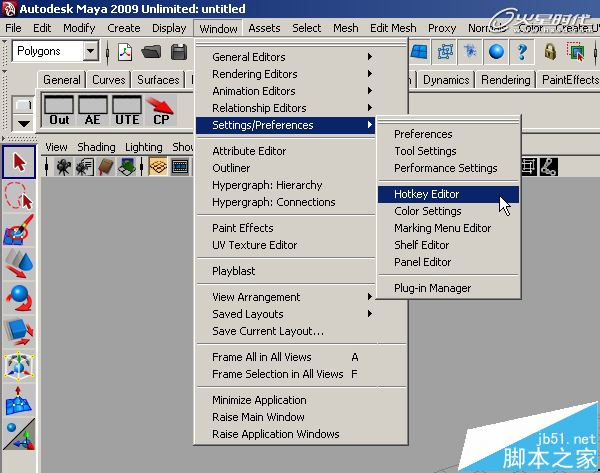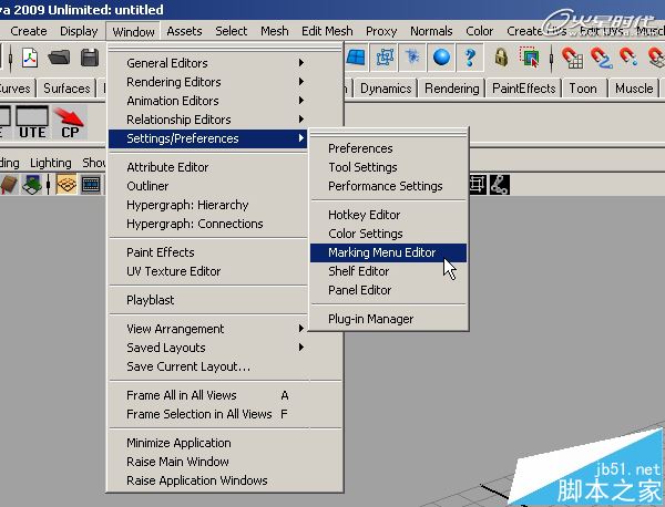 第3步、选择Window > Settings/Preferences > Marking Menu Editor