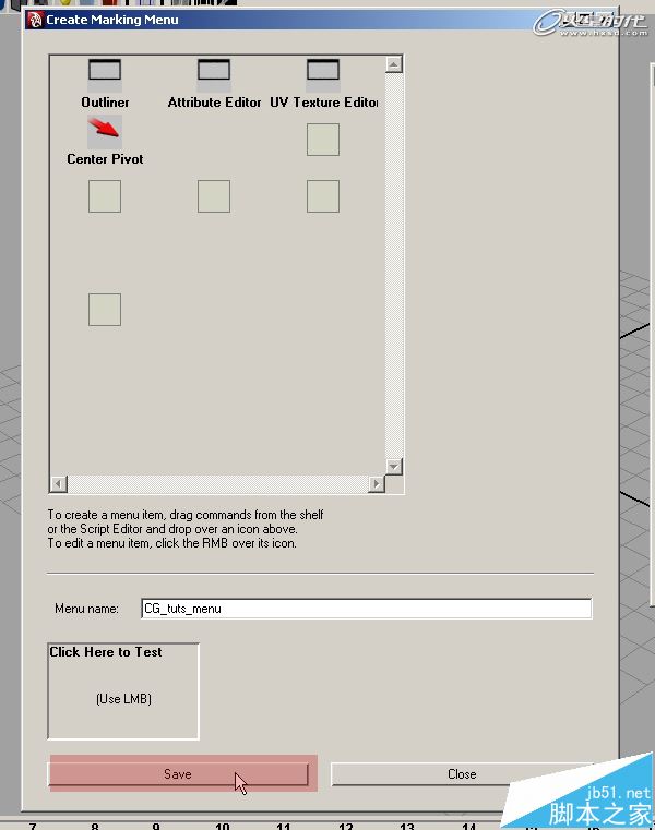 第12步、现在单击保存并关闭该窗口,让我们来测试一下!点击热键你就可以看到,自定义标记菜单已经完成。