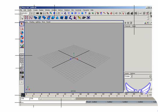 除了所看到的菜单外,还有 4 个特殊功能区域 —— 从热键箱以 45 °延伸出的 4 条线所分割出的区域,在这一部分中的弹出菜单称为标记菜单。顶部区域可以快速选择可存储布局;右边区域可以打开或关闭 Maya 的 GUI 元素;底部区域可以将所选的窗口改为有用的视图 ( 如 Hypergraph 或 Hypershade) ;左边的区域可以在物体模式和组件模式之间进行切换 ( 模拟 F8 键 ) ,还可以打开或关闭选择蒙板模式。