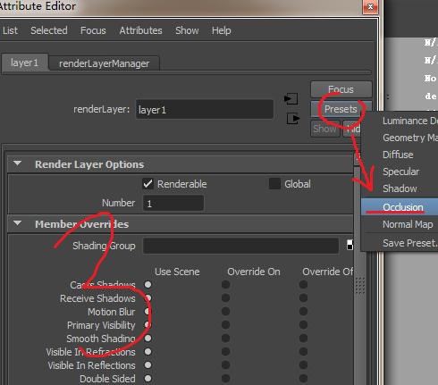 在图层下,新建渲染图层,将要渲染环境光遮挡(也就是AO)的物体放入渲染层。然后右键渲染层,打开属性面板,在渲染层的属性面板的预设下,设为AO方式就可以了。如图示。