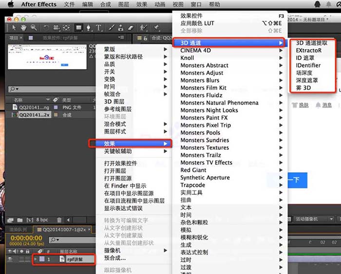 如果要读取这写文件更深层次的内容,那么你需要使用的是AE 中的下图命令去调用操作方法:图层上右键,效果,3D通道中的特效滤镜去调用,大部分不会三维软件的看客们是不是很少接触到这些特效滤镜呢?看完这篇经验文章,希望能帮到你学到更多关于AE滤镜作用的知识。