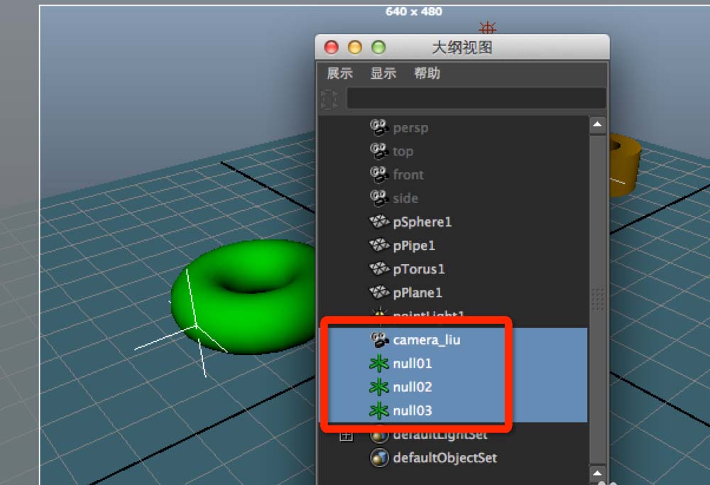 此时你看到了什么?!对,没错,三个定位器小伙伴一个摄像机终于一起出现了,此时你缩小空层,你会发现他们的其中一个顶点就是maya定位器的中心位置,