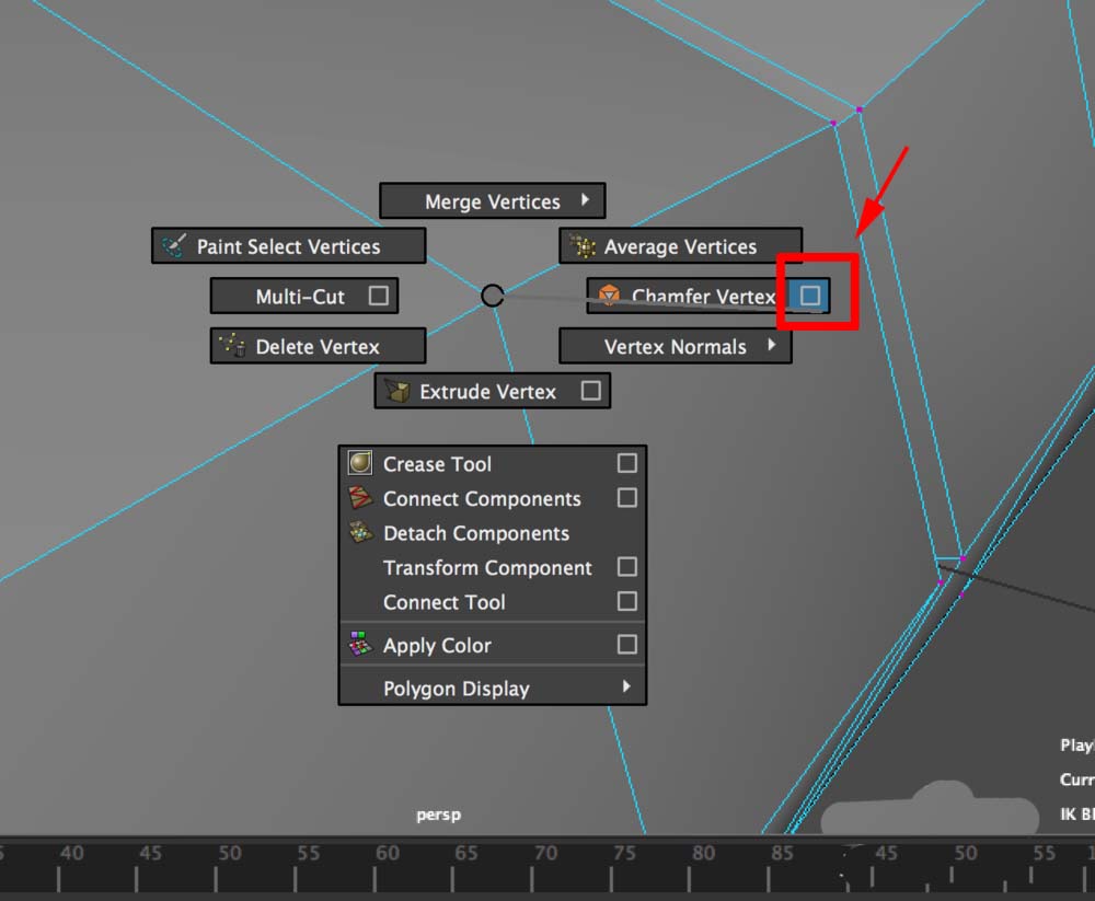4、“切角顶点”功能还可以用来实现打洞效果:在步骤2时点击“切角顶点”【Chamfer Vertex】右边的方格,编辑选项。