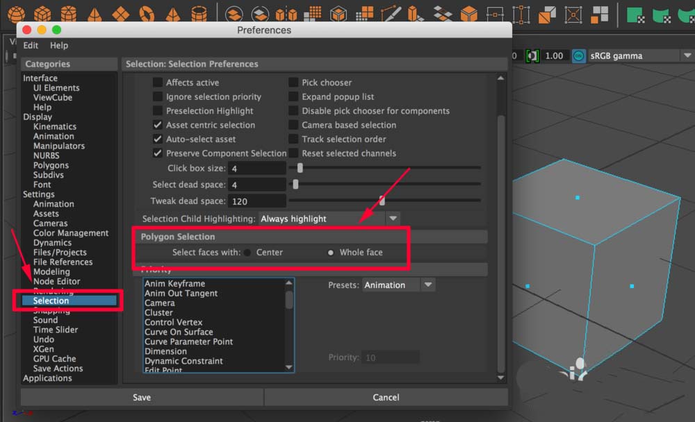 maya模型选择面的时候使用中心点选择或者整面选择,该怎么切换使用两个功能呢?下面我们就来看看详细的教程。
