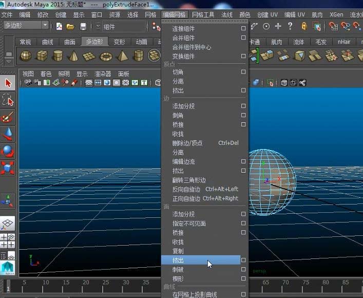 1、选择面>>编辑网格>>挤出。