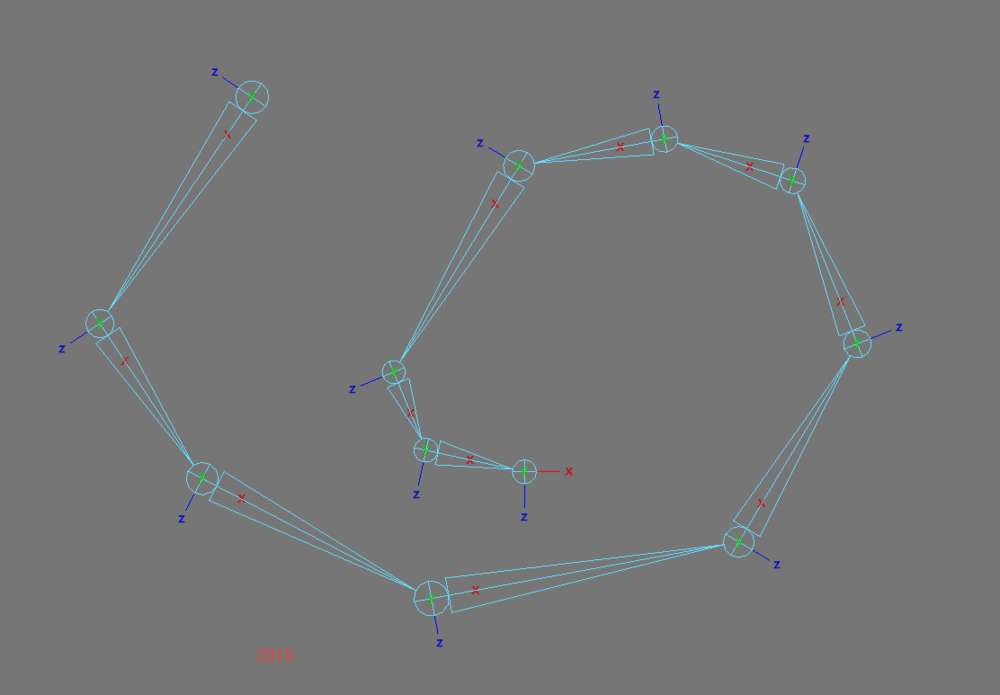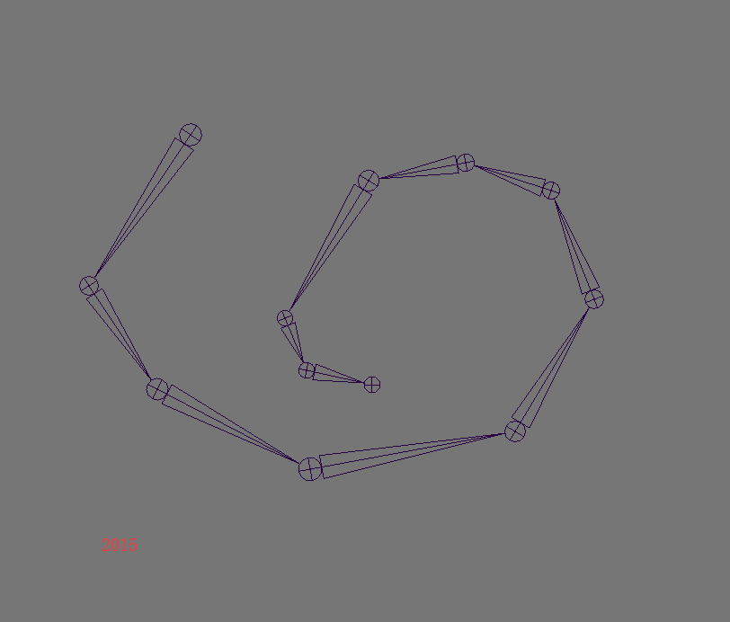 1、打开Maya创建一组不规则骨骼列,如果是标准的一行或者一列骨骼,Maya是不会出错的。