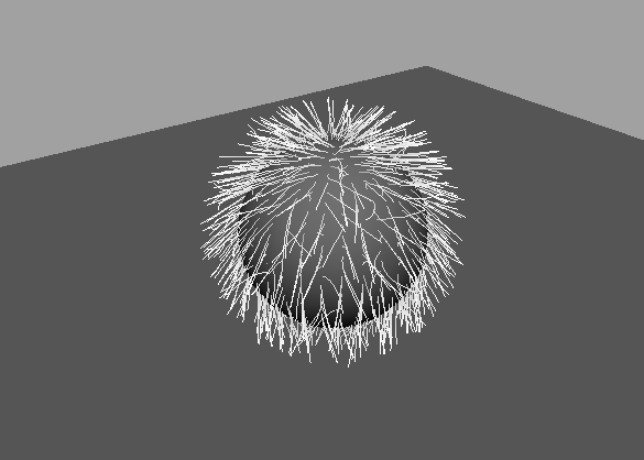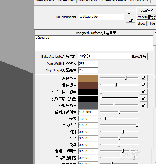 3、点击毛发,会发现球体上已经生出了毛发了,我们要做的是白色毛毛球,这时候我们打开毛发属性面板