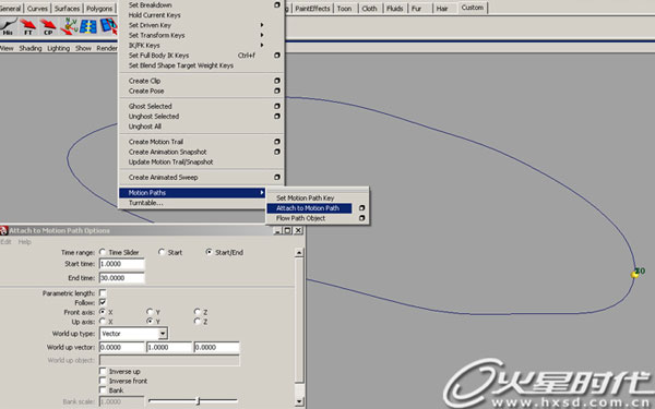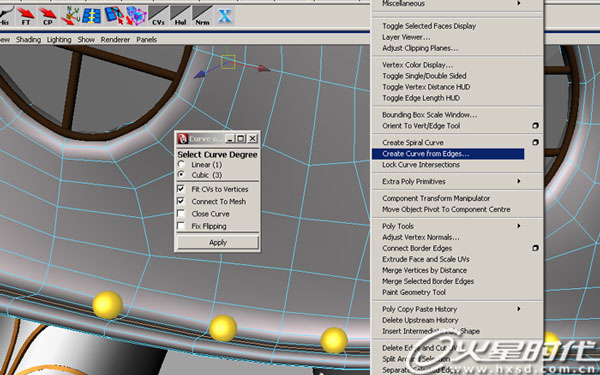 比如用这样的方法可以实现Maya本身没有的沿曲线复制功能。(图3,图4 ,图5)