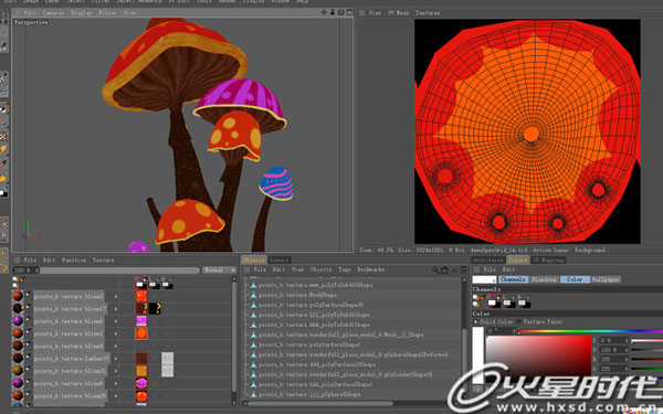 2.这样每做好一件模型就拿到Modo里面分好UV再导回Maya,很快就完成了主要模型和UV的工作。(图2)