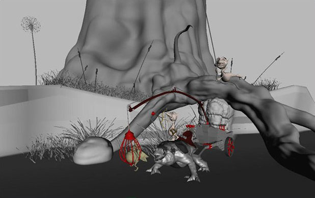 所有角色和材质的建模都是在玛雅软件中完成的,然后用ZBrush软件添加细节。低多边形建模技术需要用到。