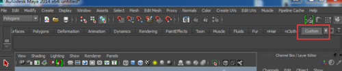 首先,我们切换工具架常用的最后一个自定义 custom ,然后添加一个结合命令到自定义工具架。