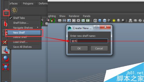 a、首先选择左边的向下三角-new shelf-命名(雪狐)