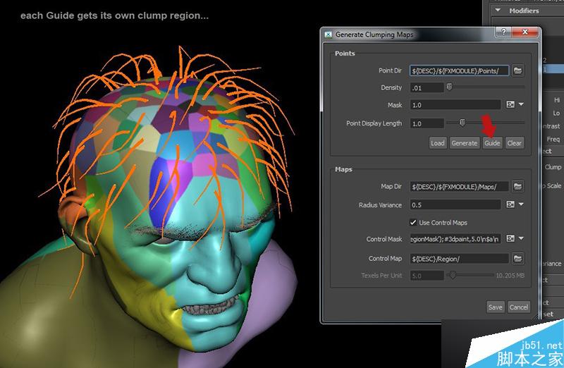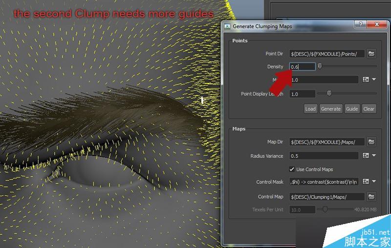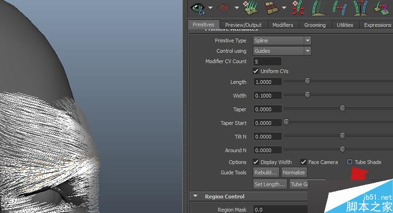 下面我将用tube groom来做一个长发版本,生成丛块的时候,点击Guide按钮会让丛块基于每根引导线,还有很多事要做...