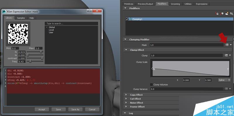 下面创建第二个Clump修改器,这个的Density值要比第一个高一点,因为这一个修改器要使用第一个的Ptex贴图,xGen的修改器运行模式是堆栈式的,接下来我将向大家展示这些贴图。