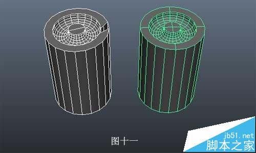 以本图中的模型为例,加分割线操作方法如下:选中圆柱体,单击菜单栏“编辑网格”,单击一级目录下拉菜单中的“交互式分割工具”(图十二),在圆柱体上单击确定第一个节点位置,再次单击确定下一个节点位置(图十三),直到分割线画好以后按“Enter”键即可。