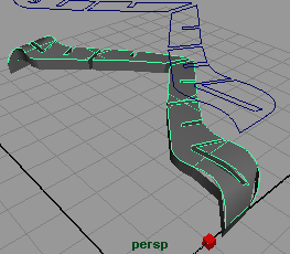 回到透视窗,选择 master_copy 将使用 edit nurbstrim tool, 选择你要保留的区域 (fig 9) ,并 trim 它,我们可以是到新的 nurbs 曲面 .(fig 10)