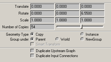 选择 loft 出来的曲面,到 editduplicateoption box 里将其设置如 (fig 28), 设置好后复制 , 你将得到 (fig 29).