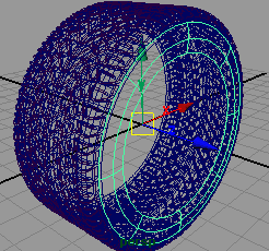 then from front view, create a nurbs cylinder (radius 5, sections 12, spans 6), rotate it to 90%26deg;, name this cylinder master_ tire (fig 2).