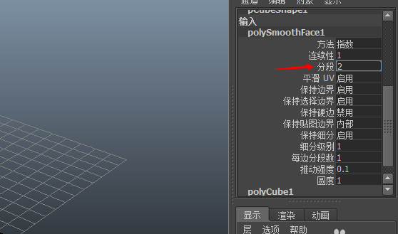 2、选择立方体,制作立方体,在通道和中修改其细分参数,见图中箭头处