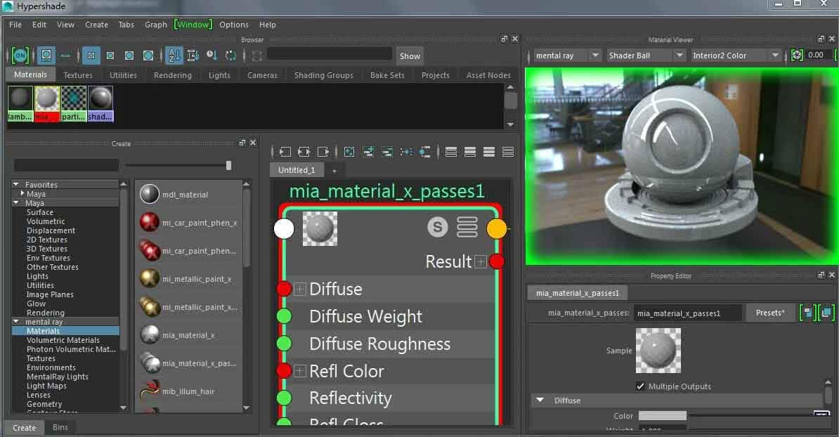 下面详细说一下article2016 mentalray我试用到现在的一些心得感受article材质编辑器(Hypershade)的更新,article2016版本Hypershade的UI更新复读很大,具体的可以看帮助,在这里就不再阐述了我要说的是一个我认为mentalray在Hypershade很重要也是很喜人的一个变化,那就是GPU即时的渲染预览功能,每当你改变shader到时候,Hypershade的这个预览就会以GPU加速的方式进行重绘,这是一个即方便而又伟大的进化,不用每次去渲染,可以在这里方便的查看你所调试的shader的每次变化,相比上个版本的shader自身预览更加直观如下图绿色框所示