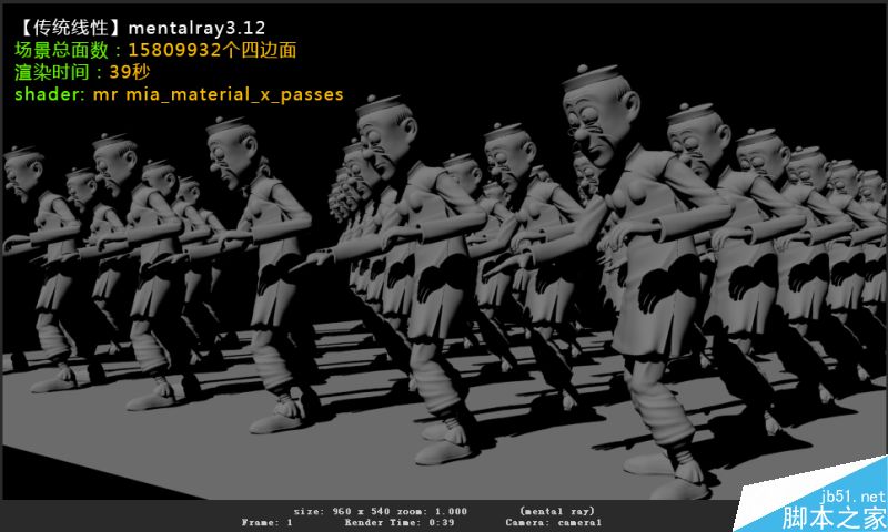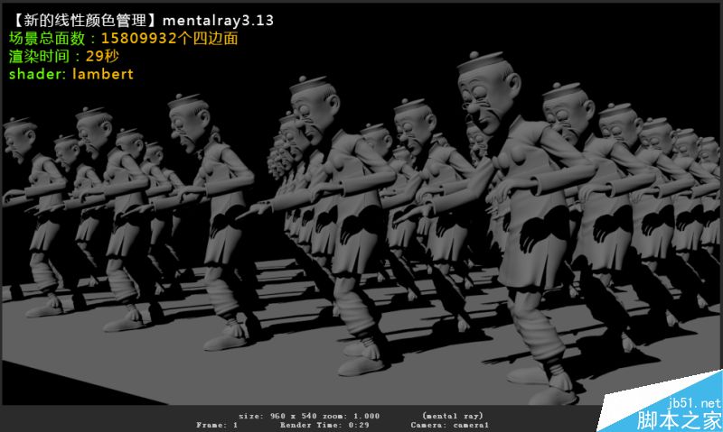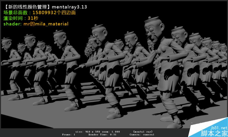 可以看到在article2016新的mental ray3.13中,经过重新优化过的渲染引擎和shader和新的颜色管理配合下,默认渲染三种shader整体比article2015的mental ray3.12要快出7-8秒之多,这是一个终于最只管的进步与改变!个人建议在以后的项目制作中尽量选择mr的mila shader,因为官方现在更注重于这种shader的优化,并且这种shader的灵活性是非常高的,从上图可以看出来它的渲染速度在面数如此多的情况下仅次于于默认lambert一点点,更何况它拥有比lambert更高的灵活性