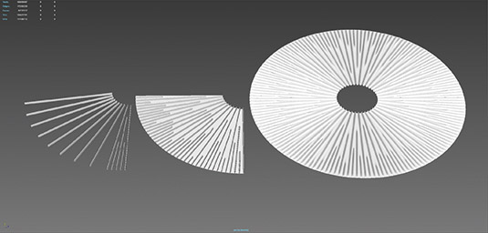 这个场景中有三个粒子系统:精灵群组,火花,以及浮尘。主要的精灵群组粒子的设置是最复杂的,必须遵循一个特定的轨道。你可以使用Maya中的体积曲线场,并以牛顿力场作为引导来保持精灵群的形状。这个曲线需要设置一系列相当密集的控制点来保持光滑的的运动轨迹。