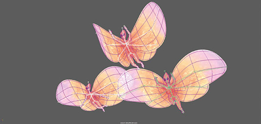 精灵们能给场景注入一些灵性。我们可以制作出一个模型和它的动画,然后通过调整比例和移动关键帧生成两个更多的变体。你可以仅直接用关节动画完成,因为这个例子里不需要用到反向运动。设置准备好后,你就可以用替代工具将群组替换为精灵群组。这个项目文件中包含了其中一个小精灵的一个额外特写动画。