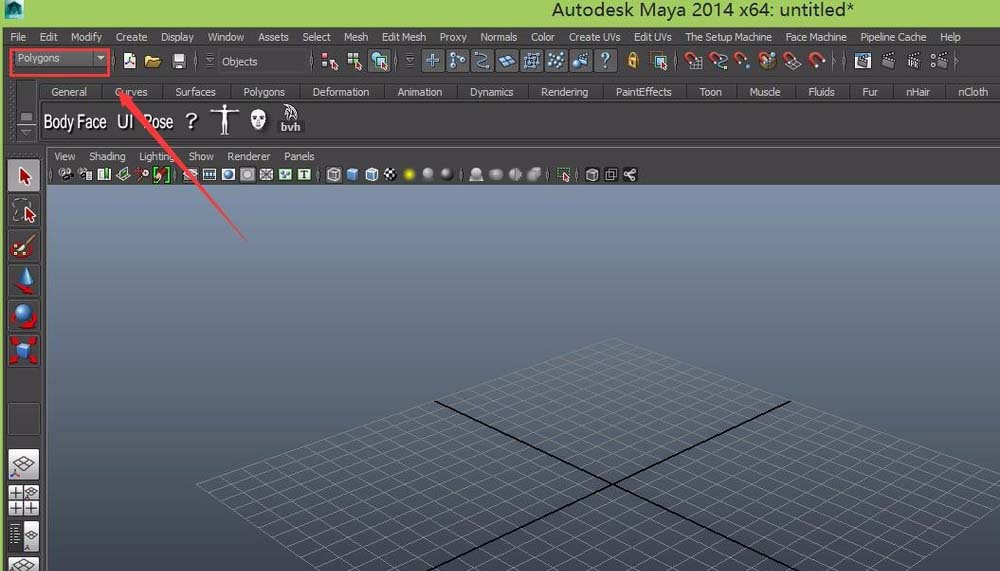 2、在这个界面内找到模块切换选项,将其切换为polygons模块,如图所示: