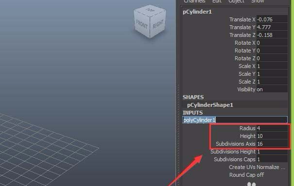 5、选择刚刚创建cylinder物体,在右侧的属性里找到polycylinder1选项,调节其内的参数,如图所示: