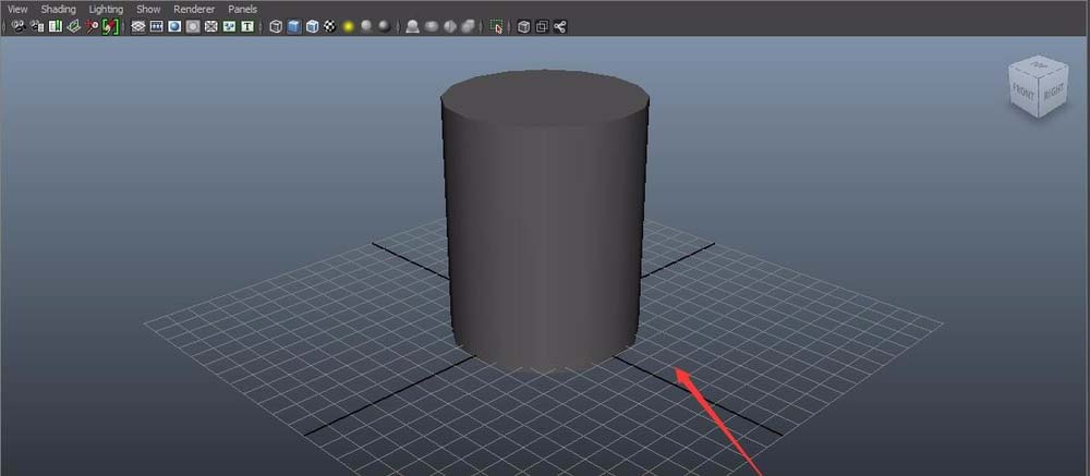 4、点击cylinder选项,用鼠标左键在工作区里拖拽,创建一个cylinder物体,如图所示: