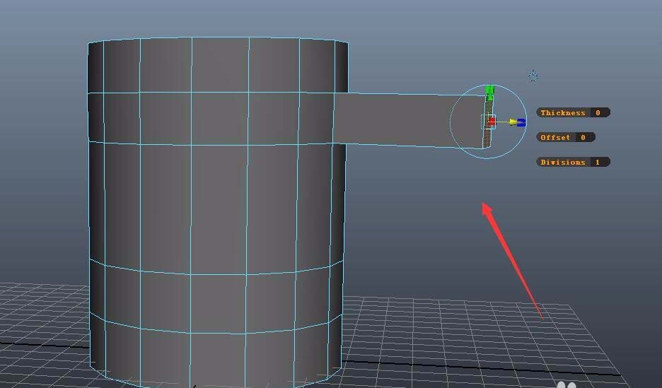 13、在这个选择的面上沿着Z轴拖拽鼠标左键,挤出一段出来,如图所示: