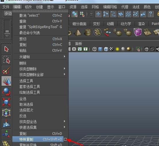 5、选择模型,进入“编辑>特殊复制选项”(单击图中箭头处的小窗口),修改图中箭头处的值(缩放 x值)为-1,然后单击”特殊复制“