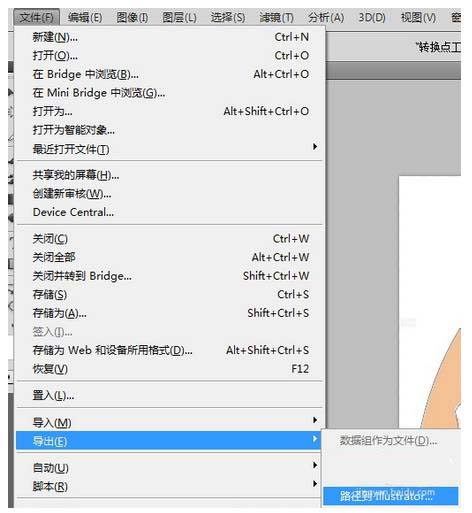 做好的路径再经过文件---导出---路径到Illsdtrator...。在新窗口中默认选择工作路径---确定--保存到指定文件夹。