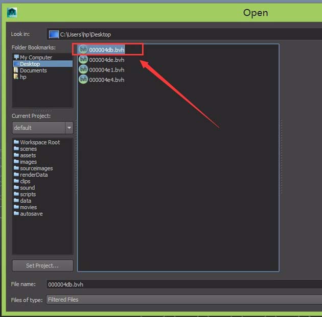 3、点击BVH图标,弹出打开对话框,如图所示: