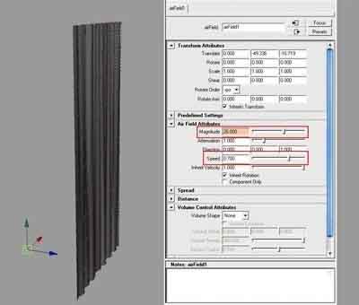 5、选中soft body,施加一个air场,在其Magnitude属性上做一段动画,模拟一下微风的感觉,速度可以自己决定。