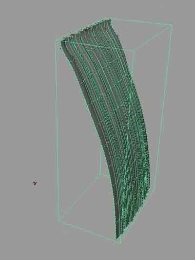 1、建立一个NURBS放样体作为窗帘布,造型可以随心所欲,但是一定要确保它看起来像窗帘。