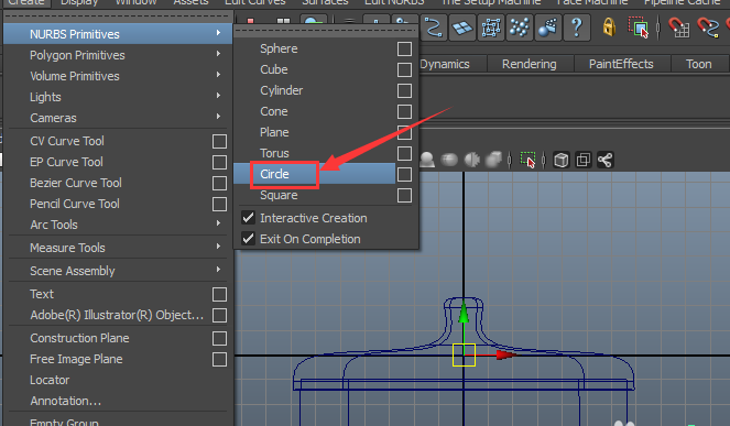 16、点击nubrs primitives选项,在其下拉菜单里找到circle命令,如图所示: