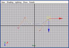 (4) 单击创建第 3 个可控点,这样,第 2 个可控点与第 3 个可控点的 hull 线便产生了。至此为止,一条曲线还没有诞生,因为一条度数为 3 的曲线至少需要 4 个可控点,如图 4-10 所示。