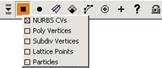 (2) 激活 points 按钮,单击鼠标右键在弹出的菜单中选中 nurbs cvs 项,如图 4-14 所示。或者移动鼠标指针到被激活的曲线上,单击鼠标右键,并从弹出的标记菜单中选择 control vertex 命令,如图 4-15 所示。