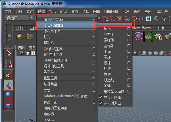 1、Maya安装完成后默认我们创建的基础物体方式为交互式创建,既通过手动拖拽来完成基础物体的创建。