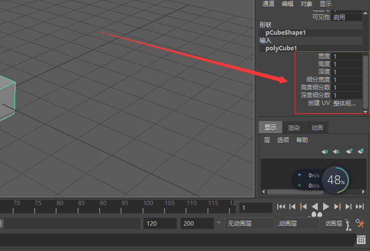 6、点击polycube1之后,就会下拉一个属性框,我们可以随意的设置基本属性。