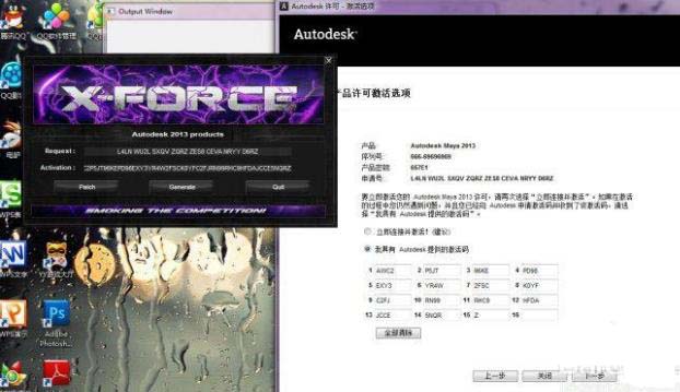 关闭后会自动打开maya,然后关闭maya,接着在桌面重新打开。点击激活。接着如图所示,复制申请号,算号,复制过来。