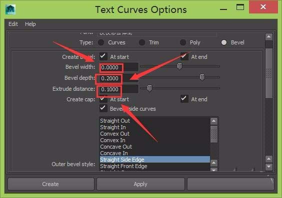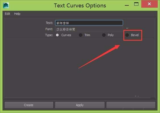 9、参数设置完后点击ok,回到text curves options对话框,在text curves options对话框内找到bevel选项,如图所示: