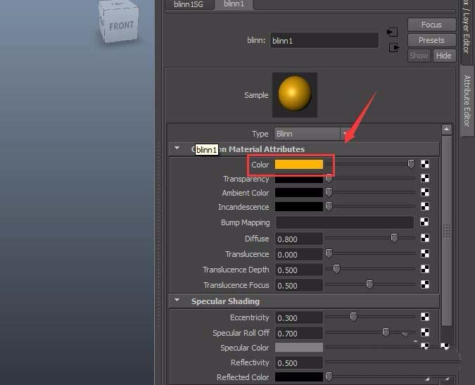 14、点击blinn选项,进入其属性编辑界面,如图所示: