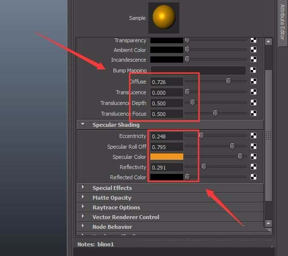 16、调节diffuse、translucent focus,及specular shading的参数如图所示: