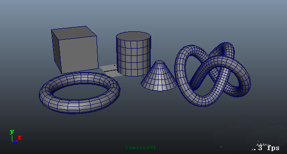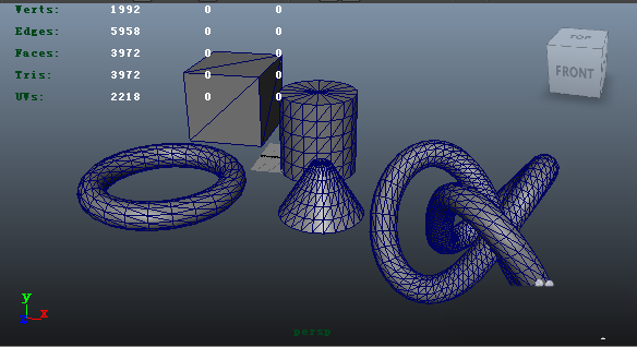 7、导入到Maya,可以看到有三个模型确实是被转换成了三角面,另外两个保持了四边面见下图。