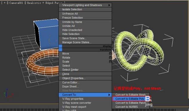 5、其原因是3ds Max的基本几何物体既不是polygon,也不是mesh,属于3ds Max独有的几何体格式,导出FBX的时候会被统一转成三角面。通常的解决办法是将待导出的几何体选中点击右键----Convert to Editable Poly,见下图。